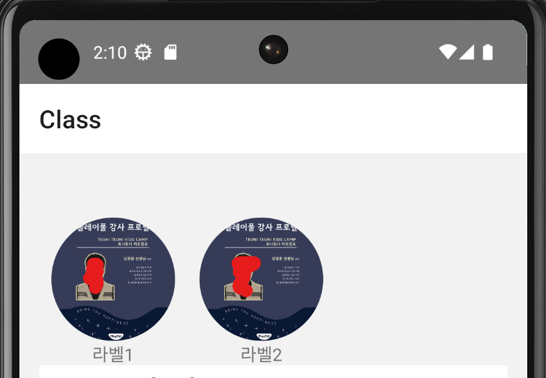 import CircleImageWithLabel from '../components/CircleImageWithLabel'; <CircleImageWithLabel imageUri='링크' label='라벨1'/> <CircleImageWithLabel imageUri='링크' label='라벨2'/>결과물 :